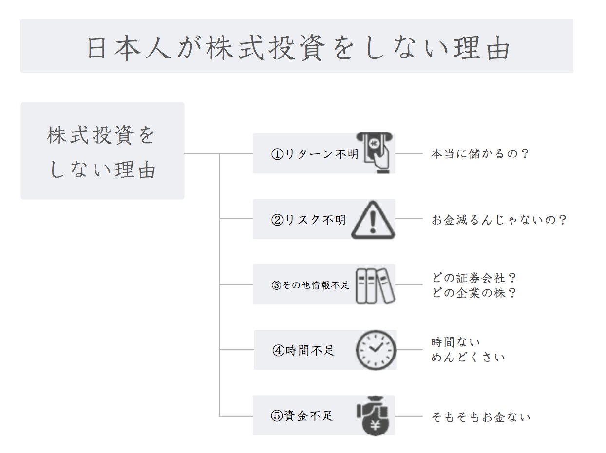なおころ على تويتر 日本人が株式投資をしない理由 ちょっと考えてみた 1 どれだけ儲かるのか分からない 2 どれだけ危険か分からない 3 証券会社 投資先企業の選び方が分からない 4 時間ない めんどくさい 5 そもそもお金ない もし他にひっかかることがあれば